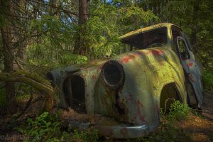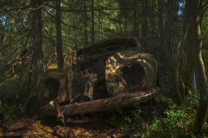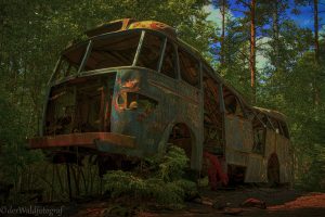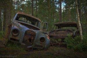 Wir waren im Juni 2024 mit unserm Wohnmobil einige Wochen in Schweden unterwegs. Davon wurde eine Woche auf dem Campingplatz Norraryd verbracht. Bei der Planung unserer Tour, hatten wir uns vorgenommen den Schrottplatz einen Besuch abzustatten. Am Mittsommertag war es dann soweit. Zeitig am Morgen begann die Fahrt zum Schrottplatz. Der Parkplatz war noch fast leer. Also kaum Leute im Wald, ideal für die Fotografie. Wenn dir ständig Personen beim Fotografieren ins Bild laufen, kann das auf Dauer auch nervig sein. Die Sonne schien von einem wolkenlosen Himmel. Die Bäume waren mit „Sonnenflecken“ übersät. Die Kontraste waren so stark, dass ein normalen fotografieren nicht möglich war. Wenn ich gute Bilder mitnehmen will, so musste ich mir hier was einfallen lassen. Hier half nur noch die HDR Technik. Um die Kontraste zu bewältigen, wurden bis zu 7 Aufnahmen pro Bild gemacht und am Abend mit Photomatix Pro verrechnet. Nach 5 Stunden hatte ich genug. Durchgeschwitzt aber doch zufrieden wurde die Fototour beendet und wir fuhren zurück nach Norraryd wo mein erster Weg ins Duschhaus führte.