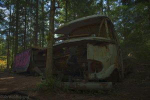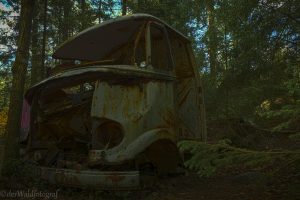 Für einen Naturfreund, ist es schon ein gewöhnungsbedürftiger Anblick. Ein Schrottplatz mitten im Wald. Aber dieser Platz strahlt auch einen gewissen morbiden Charme aus.